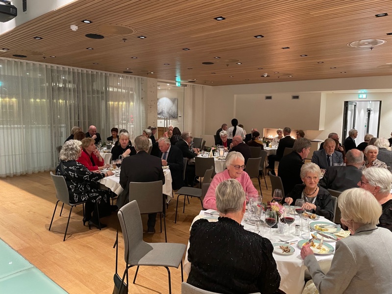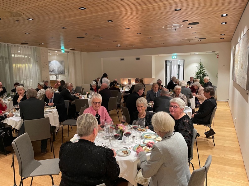 54 festkledde, glade deltakere koste seg med nydelig mat, og fremragende underholdning.