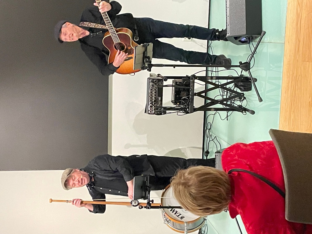 Underholdningen ble i år holdt av 2 artige trubadurer, «Bergen City Ramblers» kalte de seg for. Vi ble introdusert for en del utradisjonelle, hjemmesnekrede instrumenter kalt blant annet «Dusjofon» og «Bromlebass».